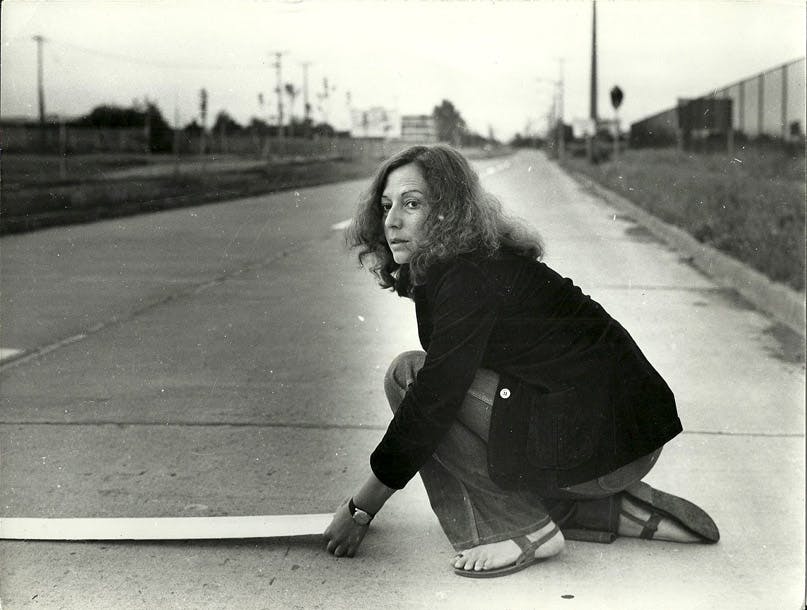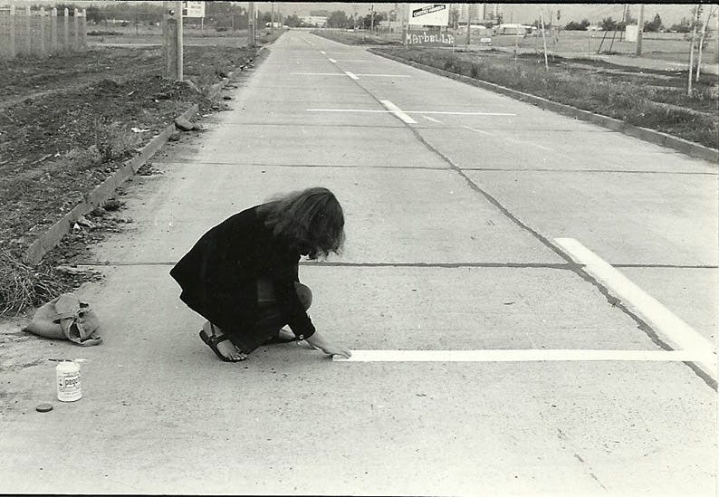 Lotty Rosenfeld (1943–2020) stands as a pivotal figure in Latin American conceptual art, whose interventions in public spaces redefined the relationship between art, politics, and society. This presentation at the Institute for Studies on Latin American Art (ISLAA) features Rosenfeld's seminal work Una milla de cruces sobre el pavimento (1979), offering insight into her practice that challenged authoritarian structures and invited collective reflection. In Una milla de cruces sobre el pavimento Rosenfeld transformed traffic lines into crosses, subverting symbols of state control into acts of resistance. This gesture, replicated in various geopolitical contexts—from Santiago's streets to the vicinity of the White House—underscores her commitment to confronting power dynamics through minimal yet potent visual language.