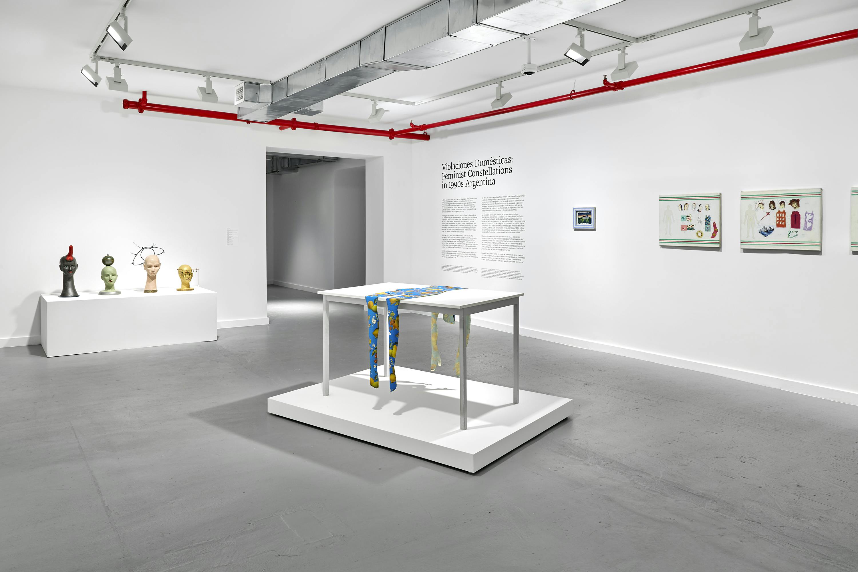 Debuting at the alternative art space Espacio Giesso in Buenos Aires, the exhibition was foundational within the movement associated with the influential Galería del Centro Cultural Ricardo Rojas, characterized by the use of found objects, an interest in kitsch aesthetics, and the melding of the personal with the political. A year after it opened, the exhibition traveled to La Manzana de la Rivera in Asunción, Paraguay, at the invitation of artist Feliciano Centurión. This transnational presentation expanded the exhibition’s critique of the limitations of domesticity, forging queer and feminist solidarities across borders.