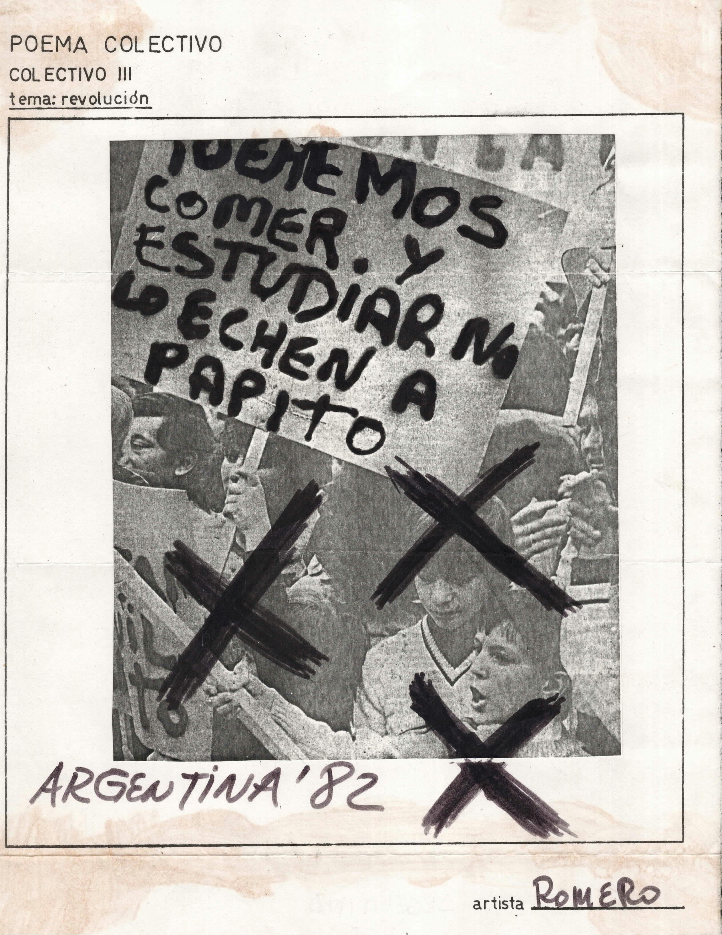 Juan Carlos Romero, Untitled contribution to Poema Colectivo Revolución by Colectivo 3, 1981–83. © the artist